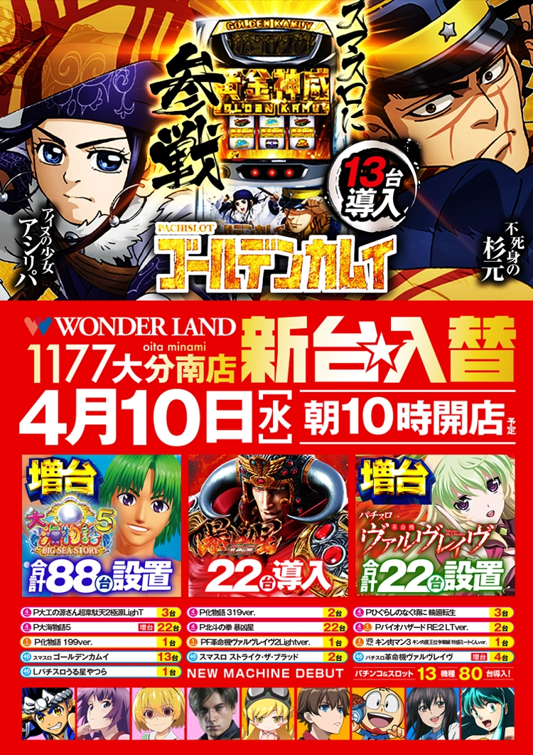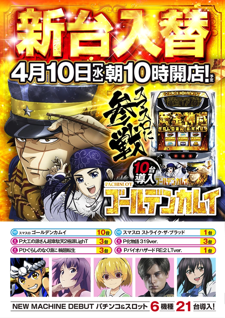 (C)野田サトル/集英社・ゴールデンカムイ製作委員会, (C)Sammy (C)SANYO (C)西尾維新/講談社・アニプレックス・シャフト, (C)Sammy (C)2006竜騎士 07/ひぐらしのなく頃に製作委員会・創通 (C)2007竜騎士 07/雛見沢御三家 (C)2009 竜騎士 07/雛見沢御三家 (C)2011竜騎士 07/雛見沢御三家 (C)2020竜騎士 07/ひぐらしのなく頃に製作委員会, (C)D-light